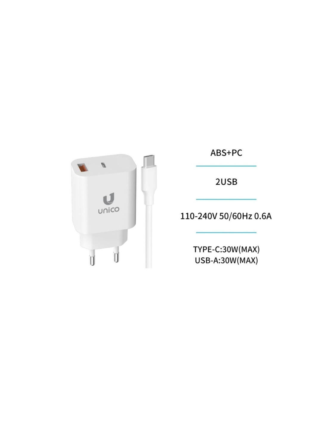Optimiza tu carga con el Unico HC4174, un cargador dual USB y Tipo-C PD30W que combina potencia y versatilidad. Cada puerto entrega hasta 30W de potencia máxima, garantizando carga rápida y segura para tus dispositivos. Incluye un cable Tipo-C a Tipo-C de 1 metro, listo para conectar y cargar sin complicaciones.