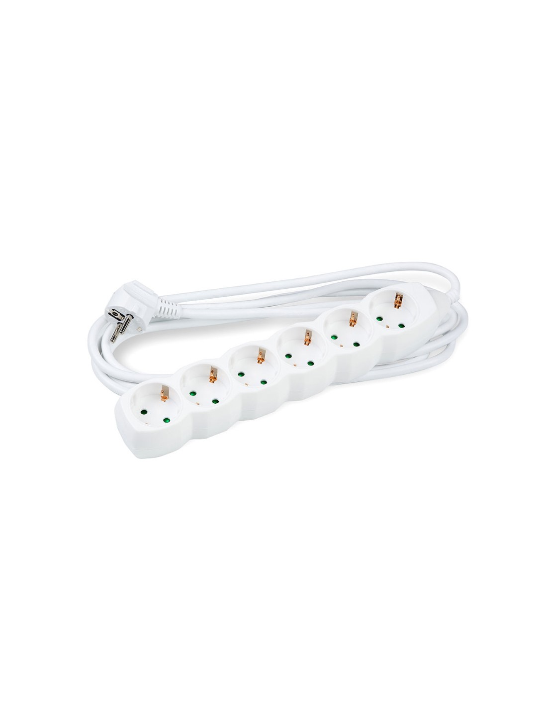 La regleta Technik en color blanco ofrece 6 enchufes y un cable de 5,0 metros de longitud, ideal para conectar varios dispositivos en el hogar u oficina. Su diseño compacto de 28x4,5x4 cm la hace práctica y fácil de colocar en espacios reducidos.