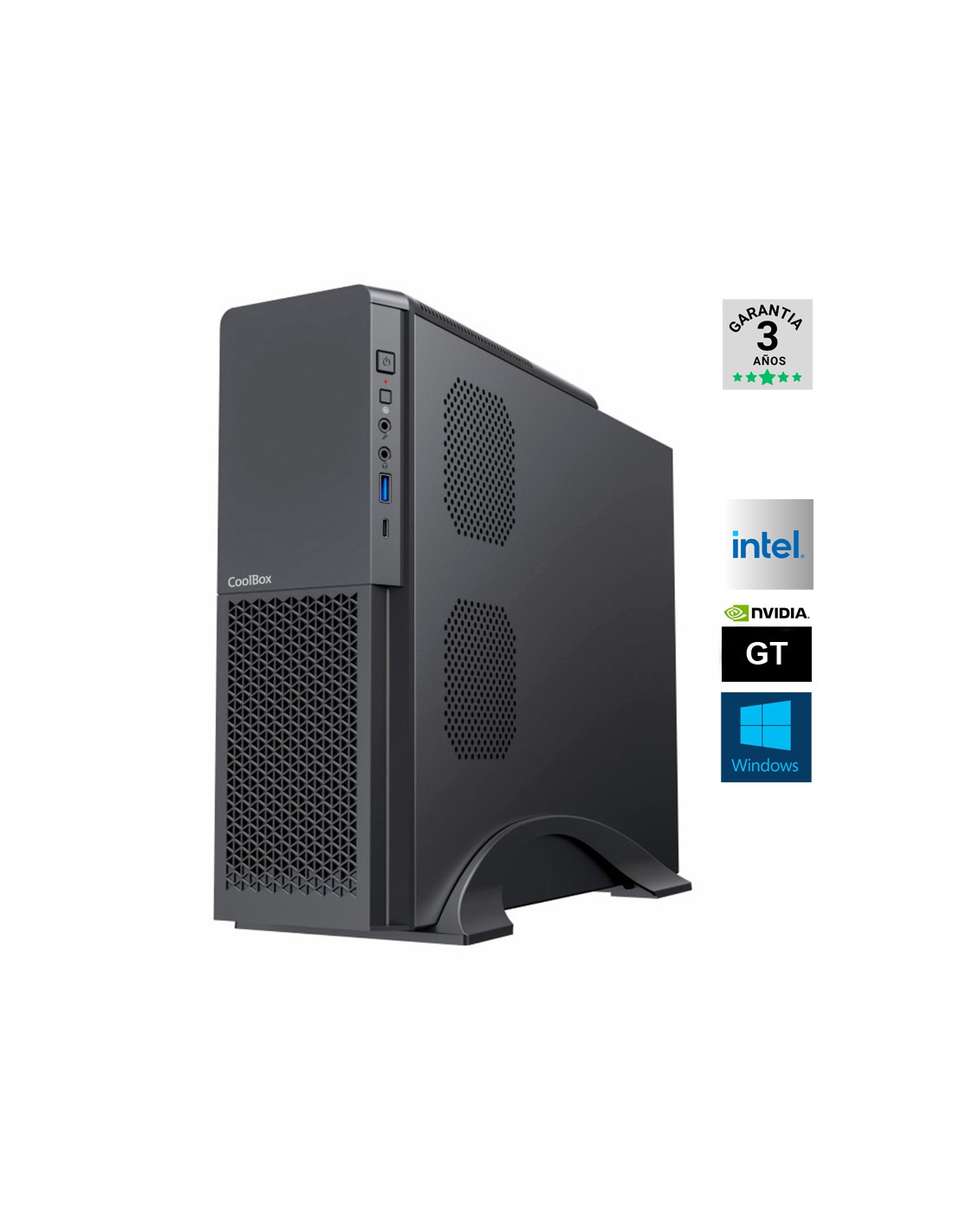 Procesador: Intel Core S-1700 i3-12100 3.3GHz, Memoria: DDR4 16GB 3200MHz, Disco duro: SSD M.2 500GB NVME, Vga: VGA GT710 2GB GDDR5, Fuente 500W, Windows 11 Pro, Caja SFF MATX COOLBOX T313 SLIM Negra. PRODUCTO SUJETO A CANON DE 5,33€ QUE SE APLICARA EN FACTURA.