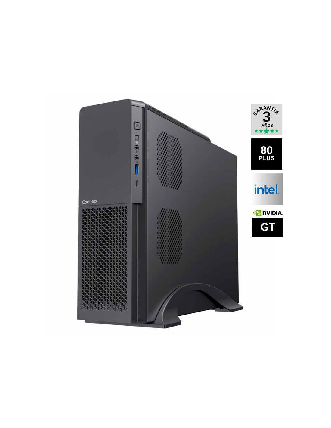 Procesador: Intel Core S-1700 I5-12400F 2.5GHz, Memoria: DDR4 8GB 3200MHZ, Disco duro: SSD M.2 500GB NVME, Vga: NVIDIA GT710 2GB GDDR5, Fuente 300W 80% PLUS, Freedos, Caja SFF MATX COOLBOX T313 SLIM Negra. PRODUCTO SUJETO A CANON DE 5,33€ QUE SE APLICARA EN FACTURA.